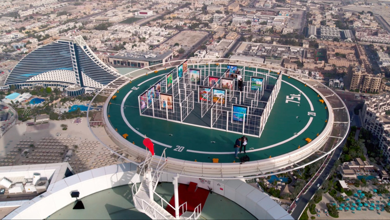 “The Art Maze” is an extraordinary art exhibition that opened in March 2022 on the famous helicopter platform of the Burj Al Arab Jumeirah in Dubai – over 200 meters above sea level. Artist and philanthropist Sacha Jafri developed the project together with curator Marcus Schäfer to celebrate the 50th anniversary of the UNESCO World Heritage Program under the motto “The Next 50”.