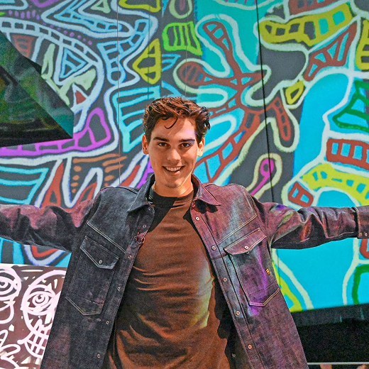 Im Zentrum der Schau stand Brosnans Serie „In Motion“: großformatige Werke, sowohl klassisch auf Staffeleien präsentiert als auch in 360-Grad-Projektionen auf den riesigen Flächen des Visiodroms gezeigt. In Kombination mit elektronischer DJ-Musik entstand eine multisensorische Atmosphäre, in der Malerei, moderne Projektionstechnologie und Klang zu einer eindrucksvollen Gesamterfahrung verschmolzen.